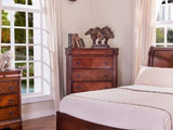 Four generous drawers in the bed’s base, sizable bedsides and dresser, with beveled mirror and an intricate patterned inlay in the timber tops distinguish this collection, destined to enhance the lives of even the most discerning.