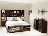 The Hurstbridge bedside tables feature bookshelves to match the bedhead, a pullout breakfast tray drawer, and fully dovetailed drawers with full extension drawer runners.